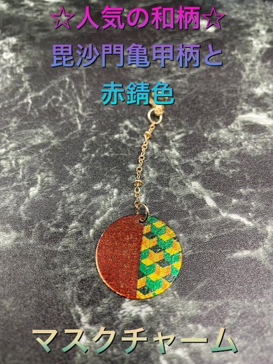 毘沙門亀甲柄と赤錆色の片身替わりの着物柄。