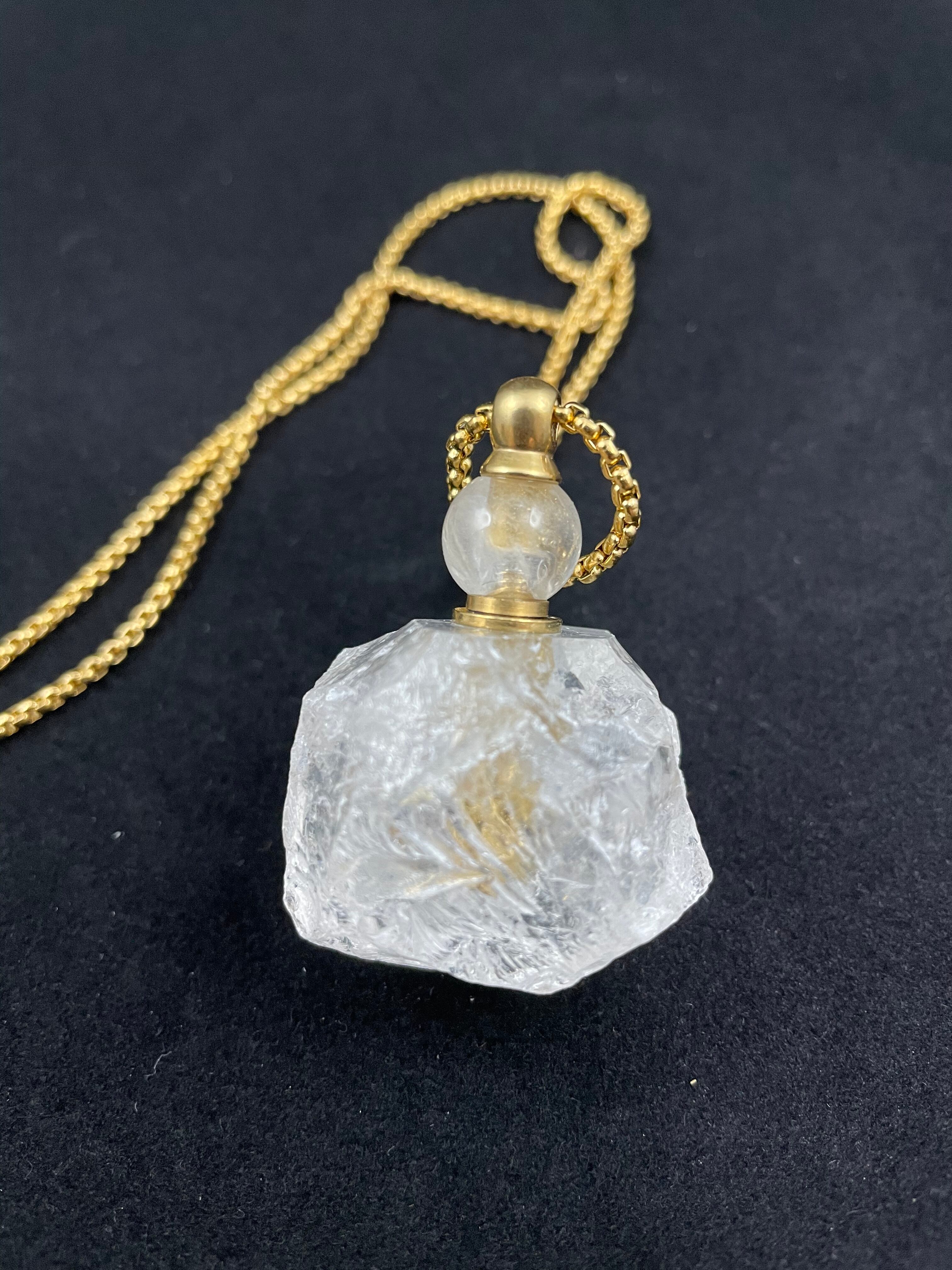 香水瓶 ネックレス 水晶 クォーツ クリスタル ゴールド 守護石 浄化 持ち歩き アクセサリー