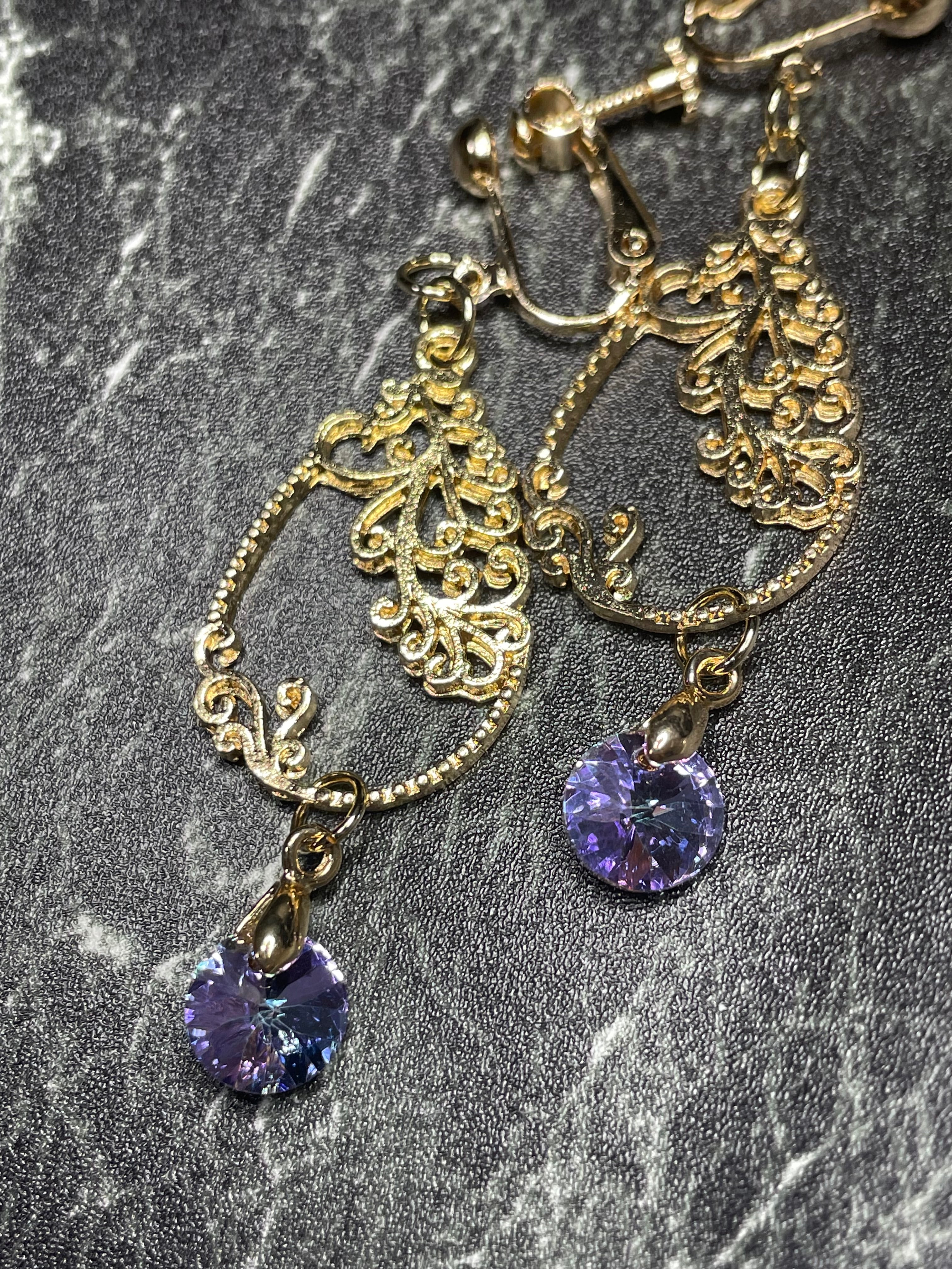 雫に蔦が絡むように デザインされたフレームから 淡い光の粒が零れました。 イヤリング、ピアス、 樹脂ピアス、樹脂イヤリングで 制作します。