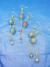 江戸切子のような模様のビーズに出会いました。 ゆらゆら揺れるのはスワロフスキーのビーズ。 和風のスタイルにも合うかもしれません。