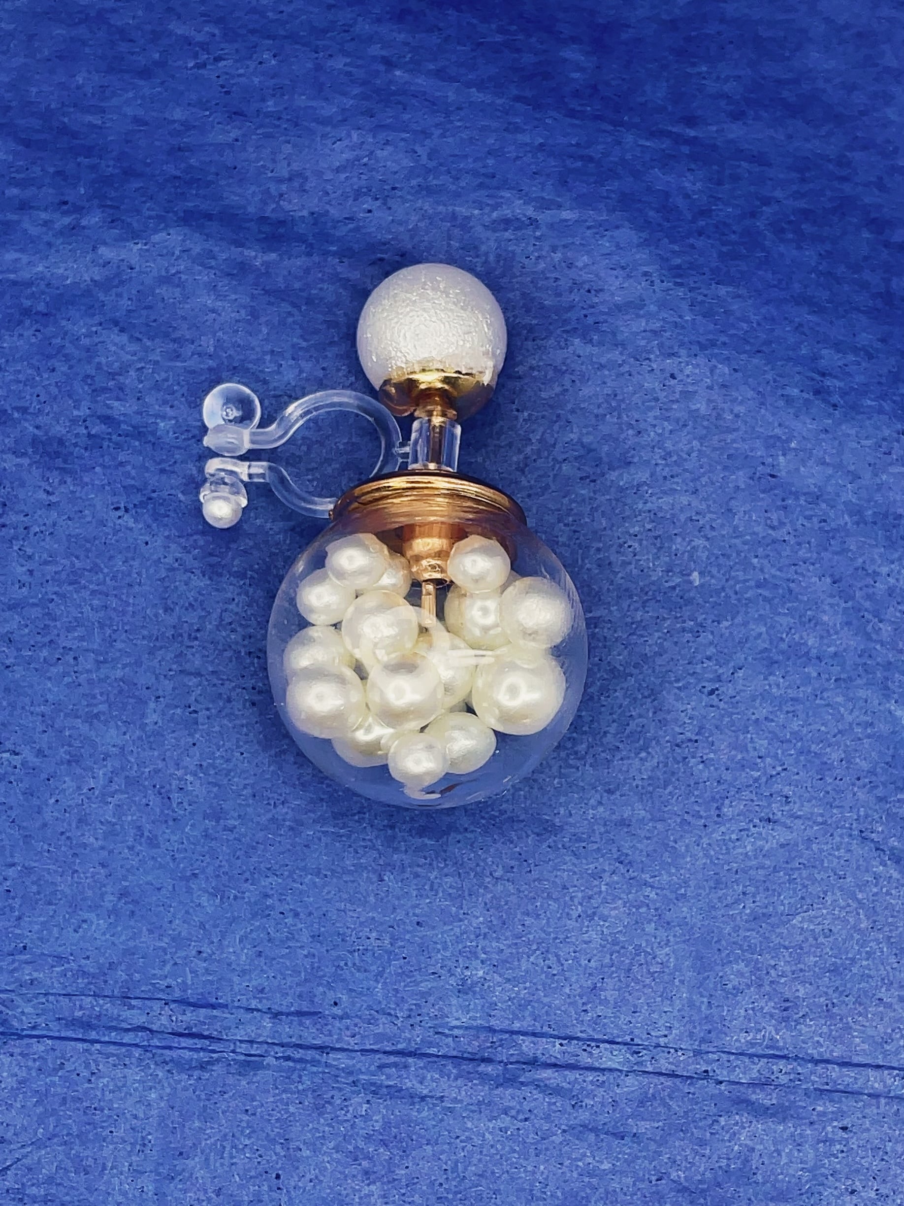 ガラスドームに色々なサイズのパールを 詰め込みました。 隙間があるので、パールが動きます。 イヤリングの派の方には イヤリングコンバーターをおつけします。