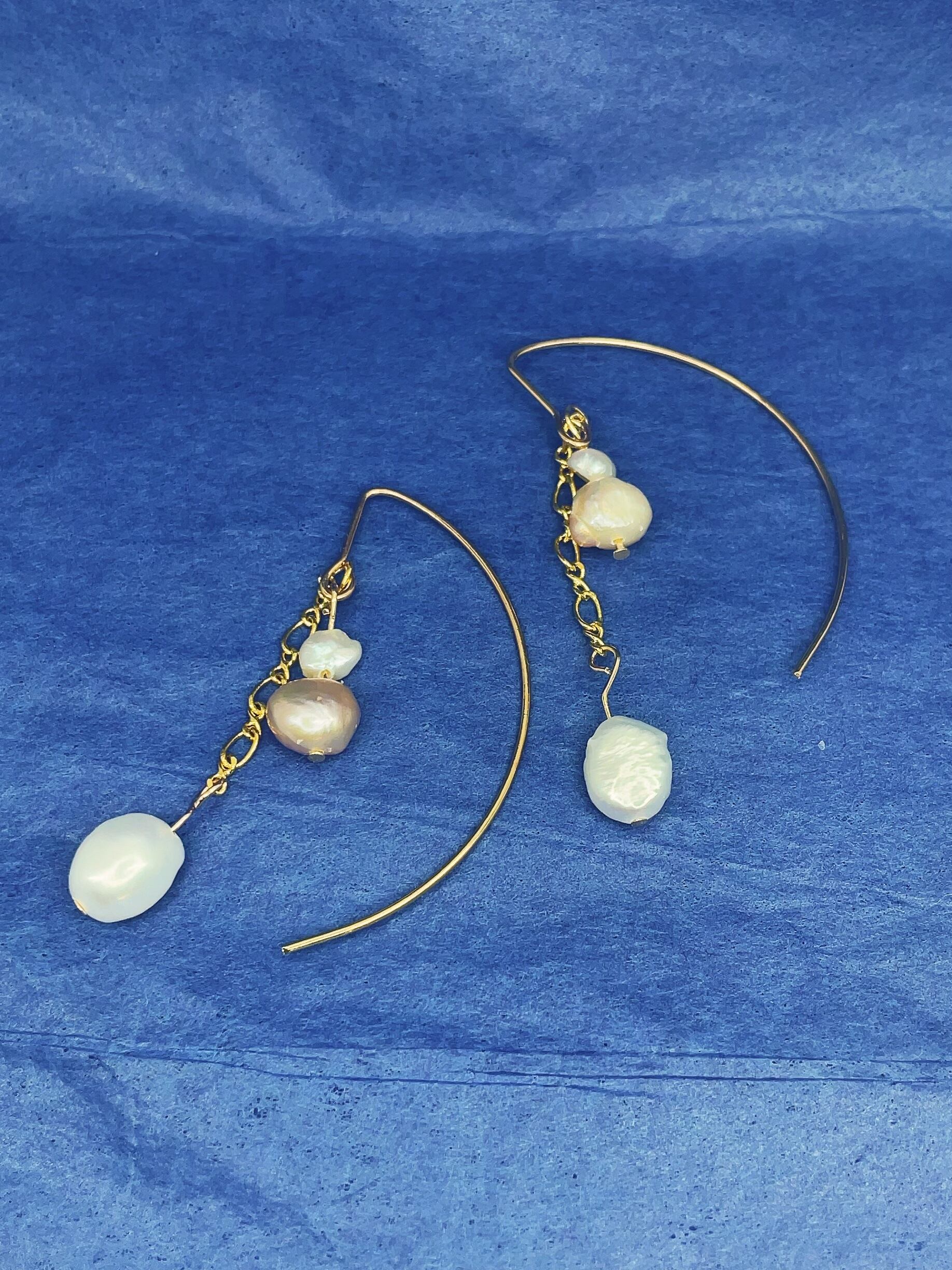 天然淡水パール(バロックパール)を ロングタイプのフックピアスにセッティング。 天然ならではの輝きと個性的な形に 魅了されます。