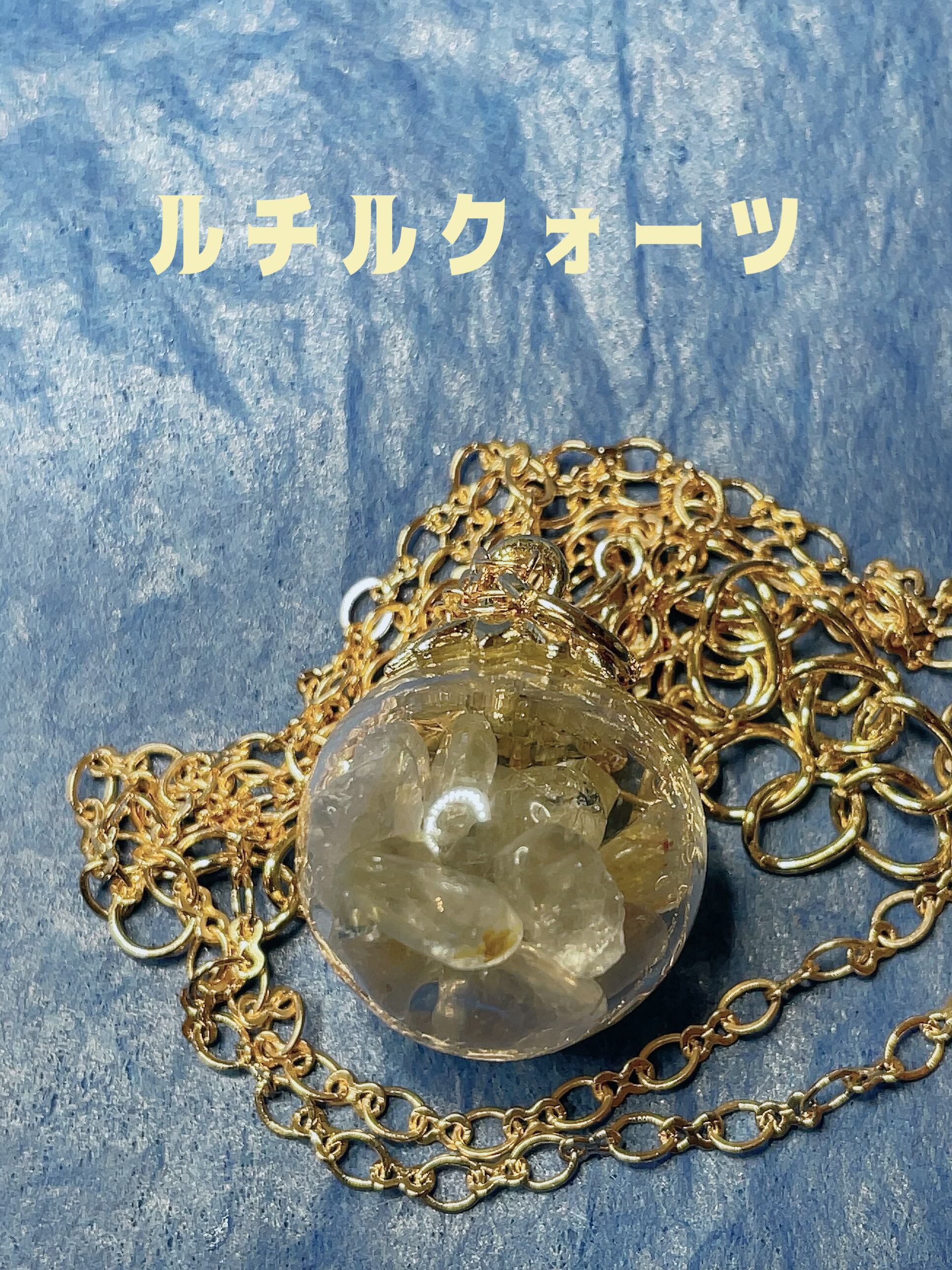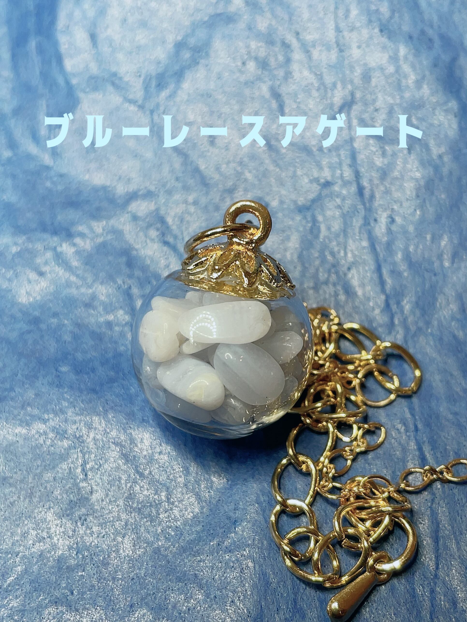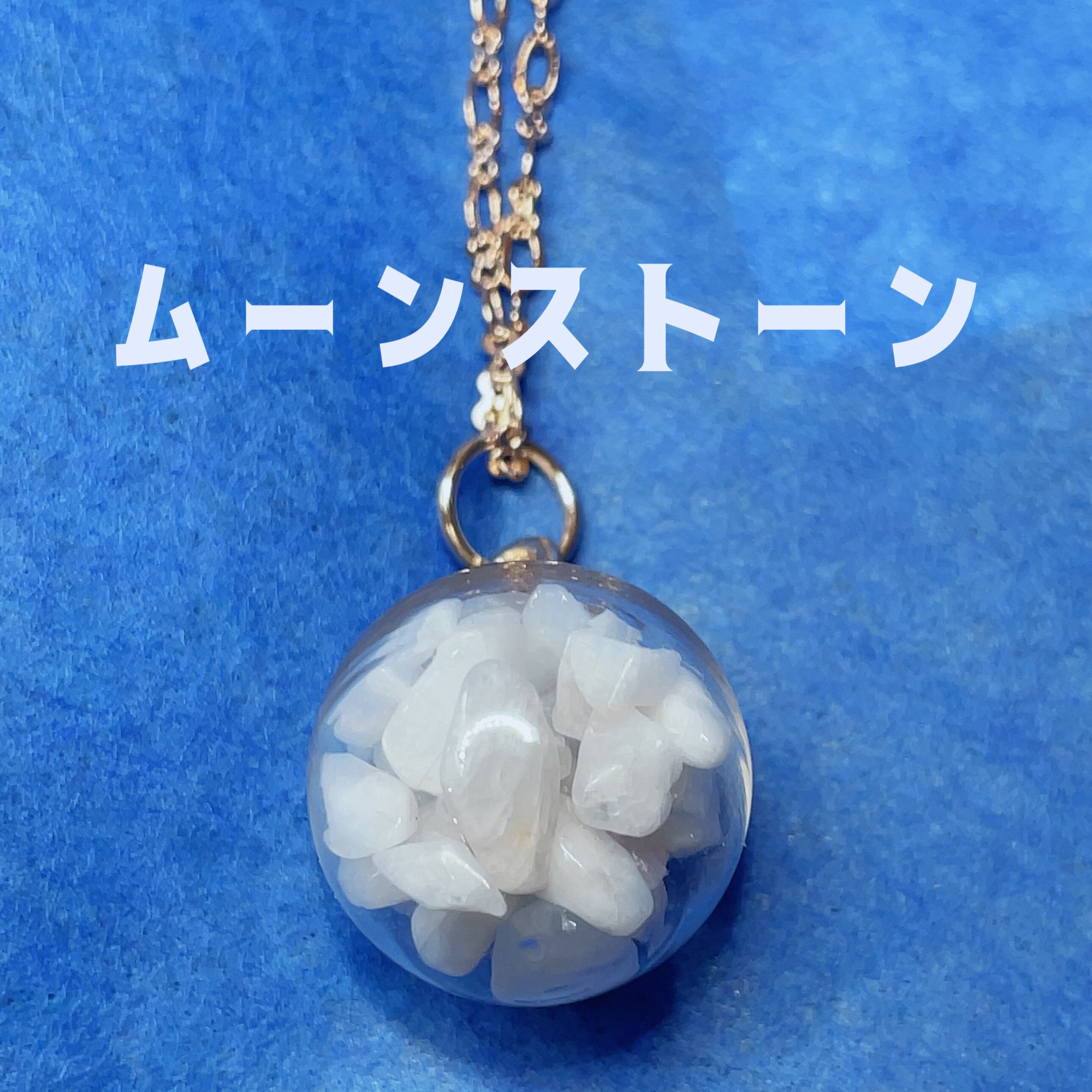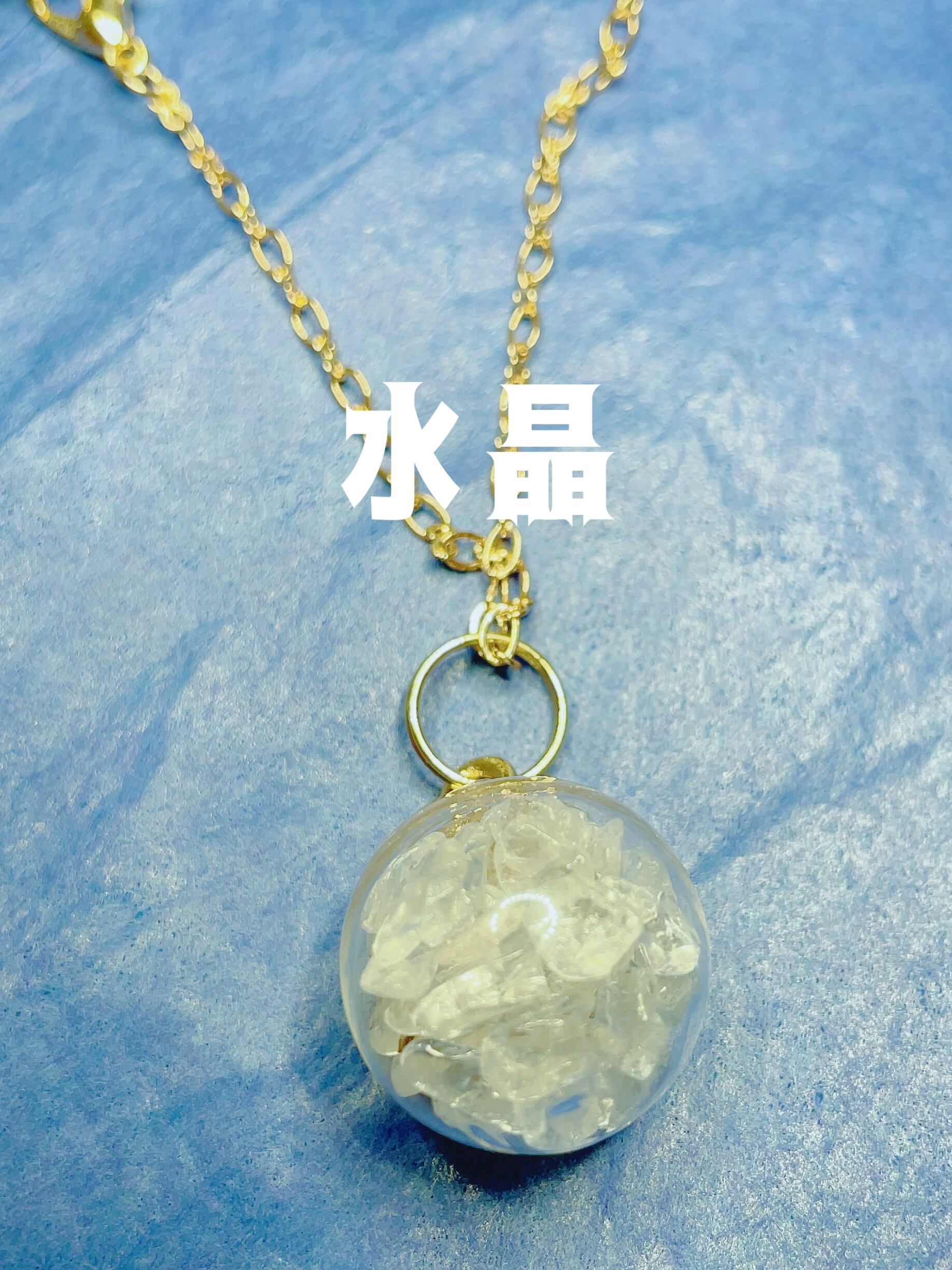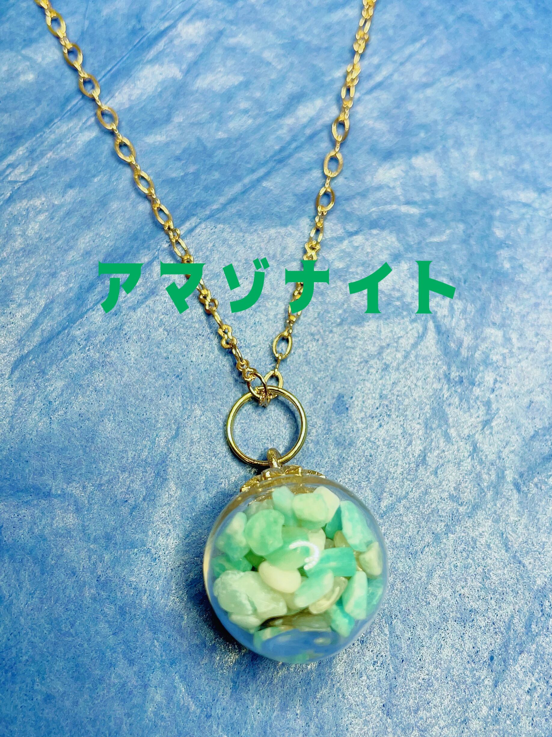 大人気のガラスドームに ふんだんに宝石の細石を詰め込みました。 長めのチェーンで46センチ+8センチ。 服の上からもつけていただけそう。
