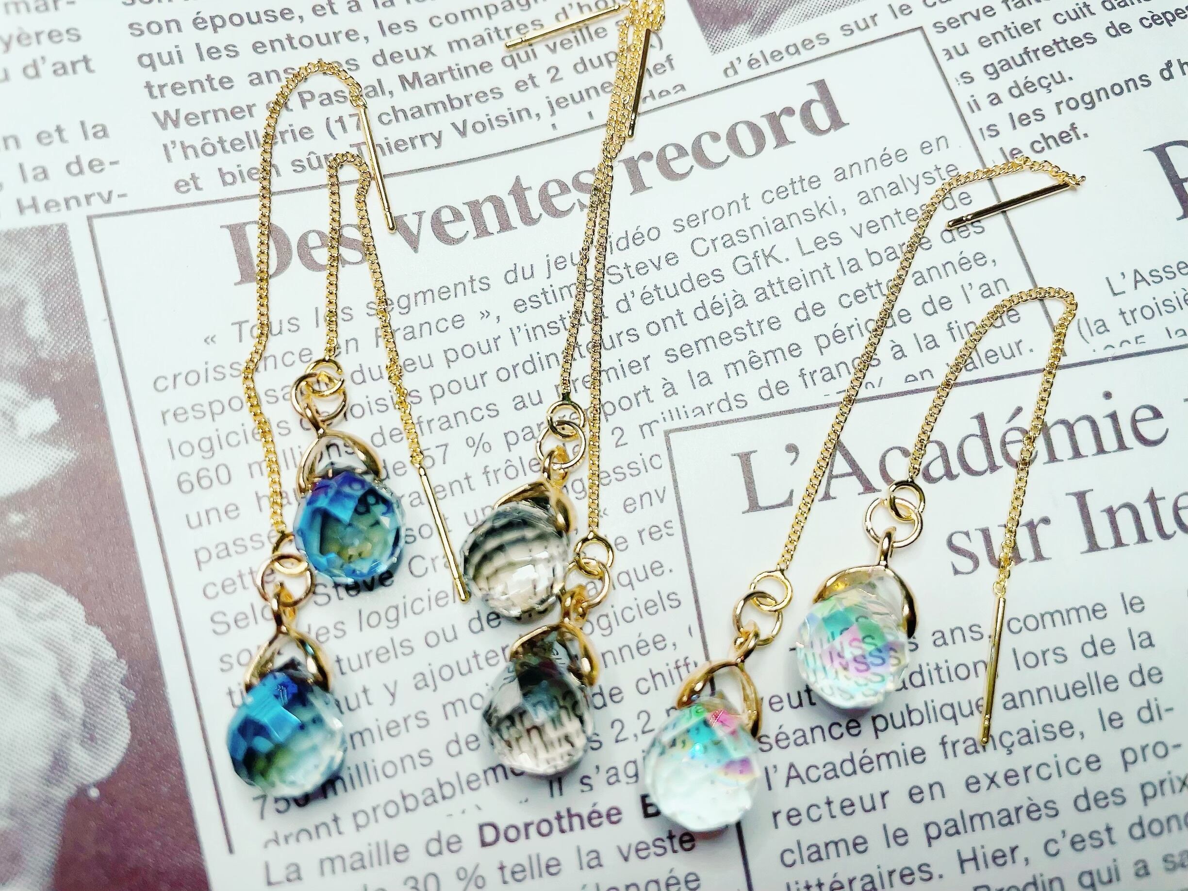 ガラスの雫のアメリカンピアスは、可愛らしいデザインが特徴のアクセサリーです。ガラスの雫がキラキラと輝き、まるで本物の宝石を身につけているような華やかさを演出します。耳元で揺れる姿がとても上品で、女性らしさを引き立てます。カジュアルなコーディネートにも合わせやすく、デイリーに使いやすい一品です。