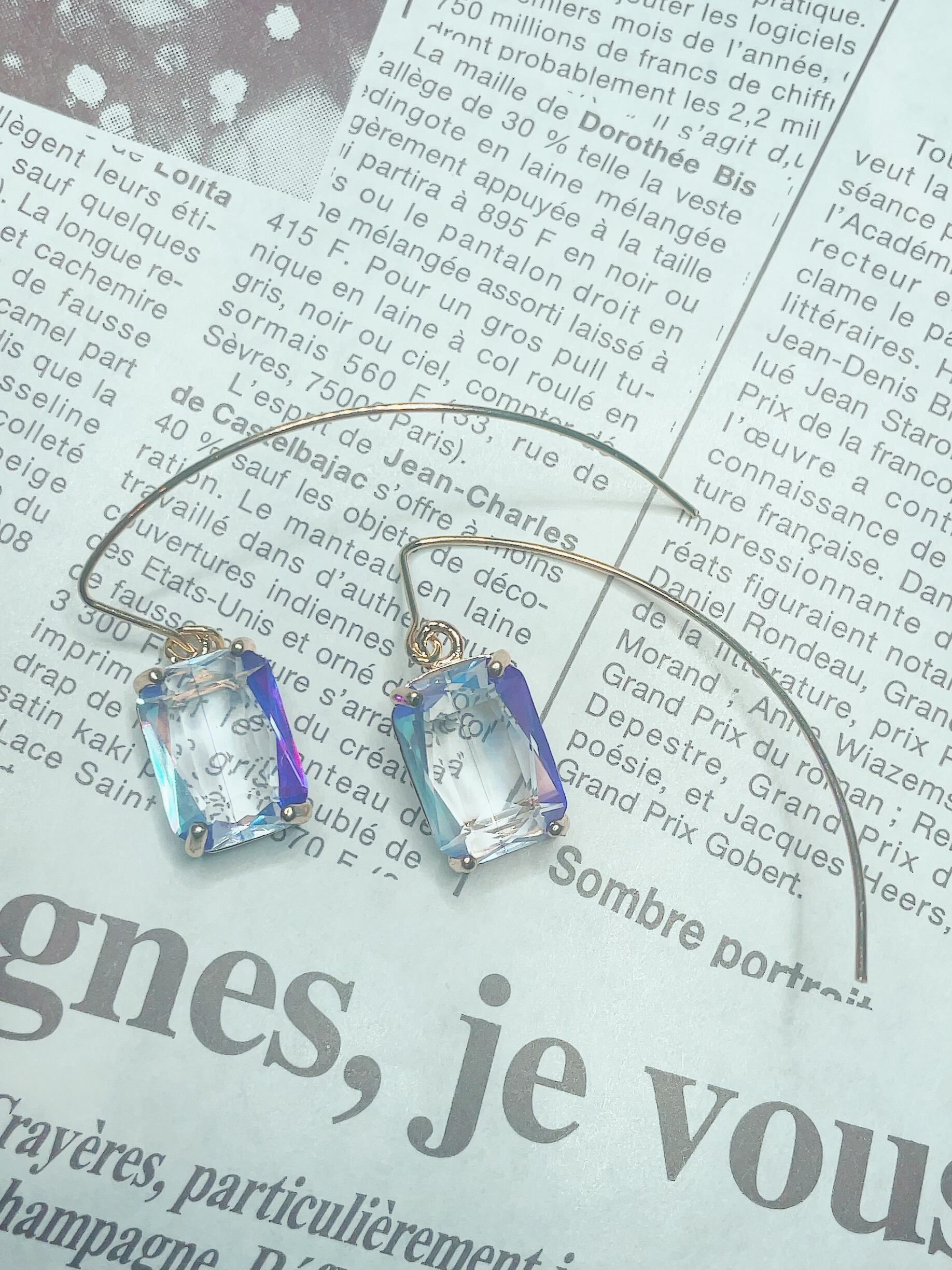 紫から水色へとグラデーションするデザインが、耳元をひときわ輝かせます。