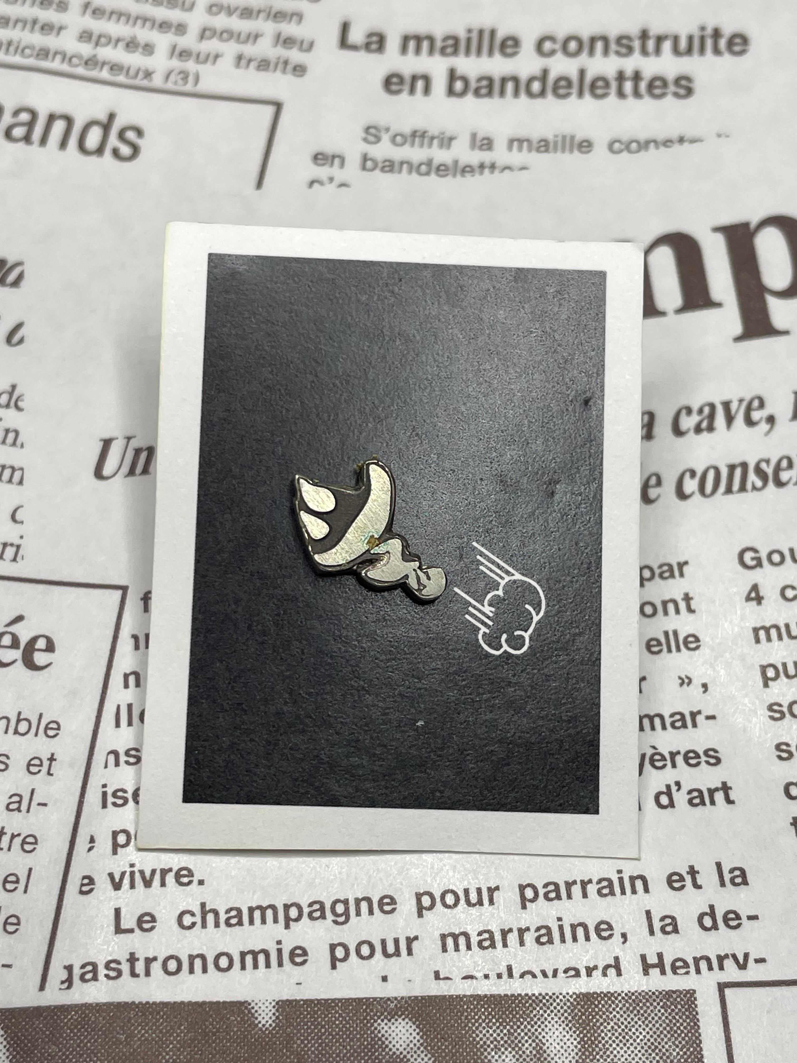 このシルバーピンバッジは、コミックの世界を象徴するかわいらしいデザインが特徴です。