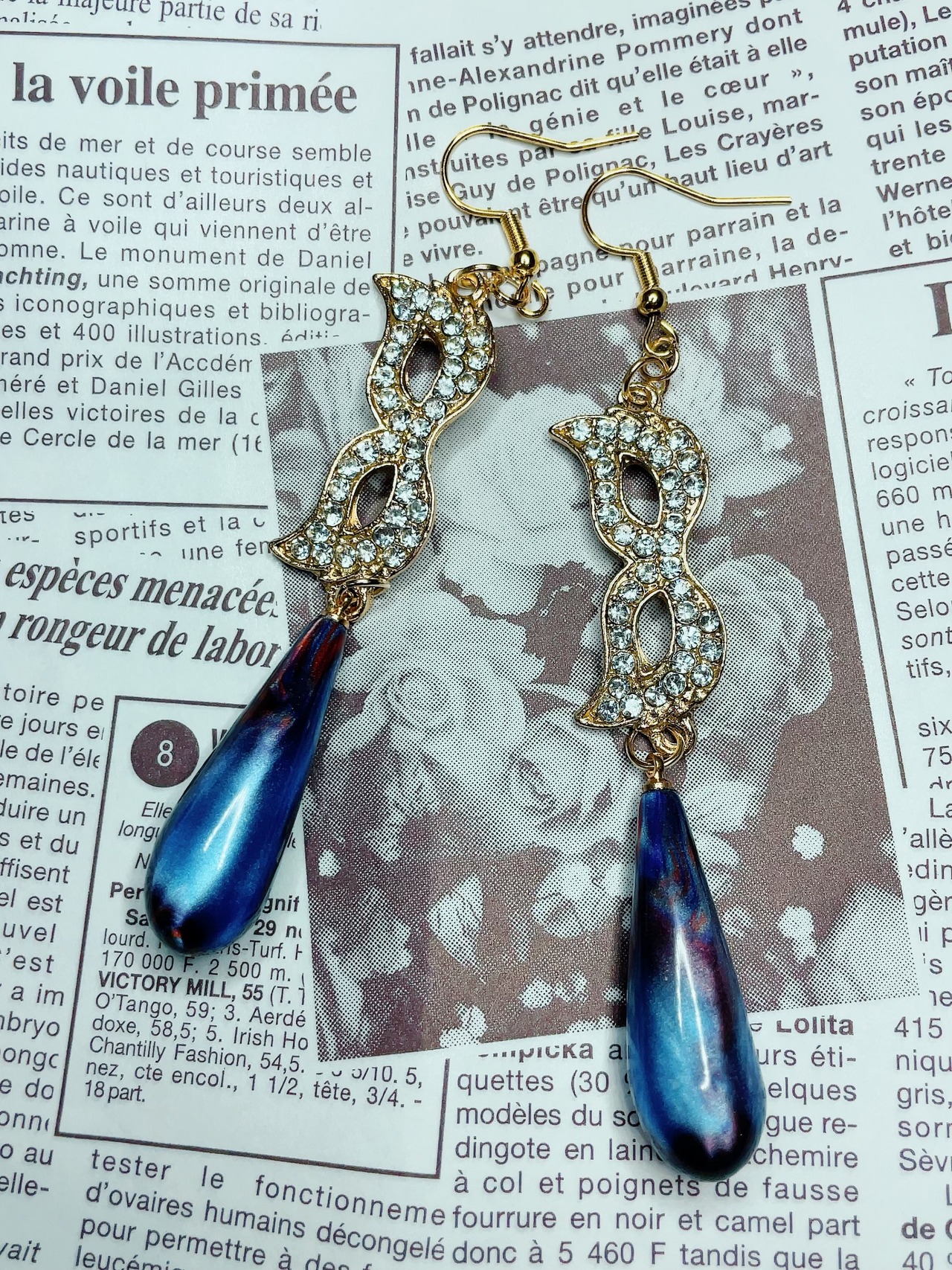 エレガントで神秘的な仮面のピアス。美しいマーブルブルーの色調が、あなたの耳元を幻想的に飾ります。これはもうただのアクセサリーではありません。あなたが日常から抜け出し、内なる自分を解放するための鍵。仮面を被ることで、自信と勇気を湧き上がらせてみませんか?夜の宴や特別なイベントで、他の人々と一線を画す存在になることでしょう。仮面のピアスがあなたを新たな世界へと導きます。是非、その世界を覗いてみてください。