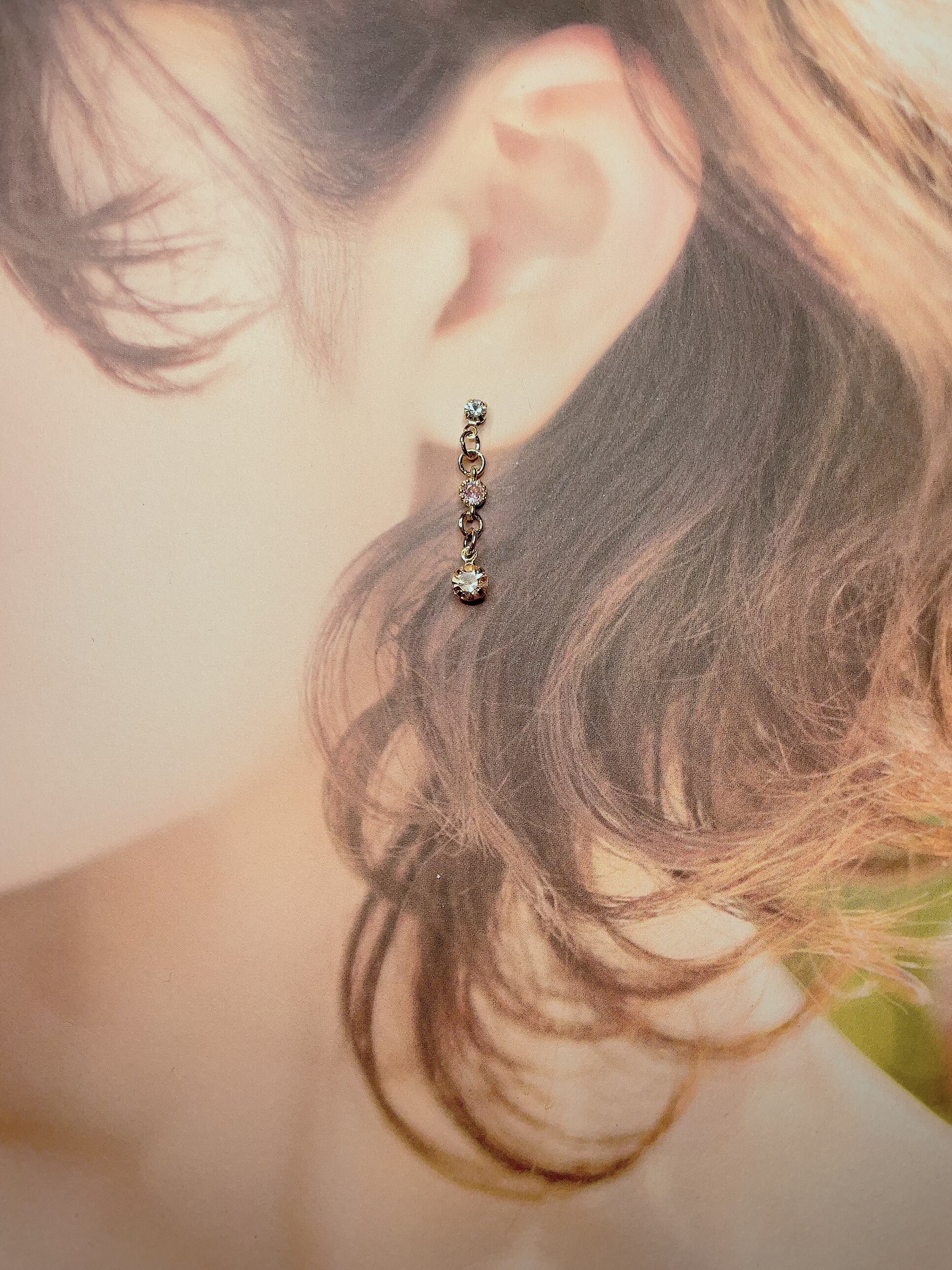 お客様により長くお楽しみいただけるよう、取り扱いの際は以下の点にご注意ください:ピアスの装着後、汗や水分がついたりシャンプーや化粧品などを使用する前には、きちんと乾かしてから装着してください。また、湿ったまま保管せず、汚れやキズに気をつけて適切に保管してください。万が一、アレルギー症状が起きた場合は、使用を中止して医師にご相談ください。