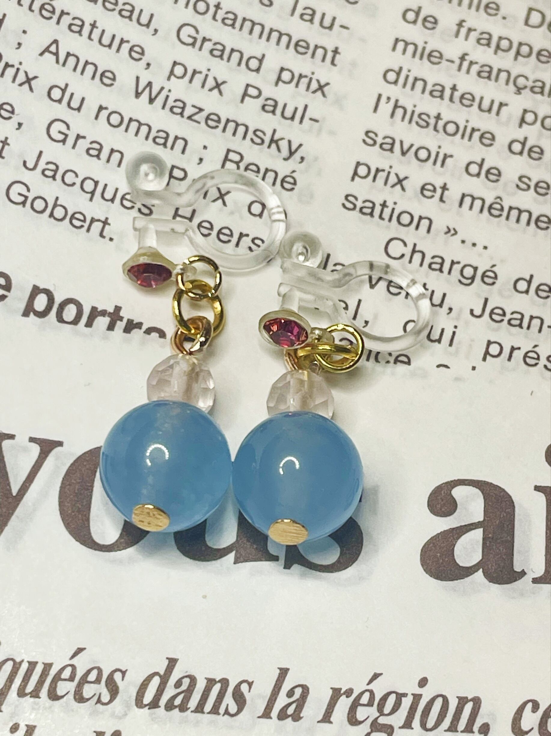 あなたの耳元を彩る美しい輝き。このブルーカルセドニーのノンホールピアスで、特別な日々を過ごしてみませんか。