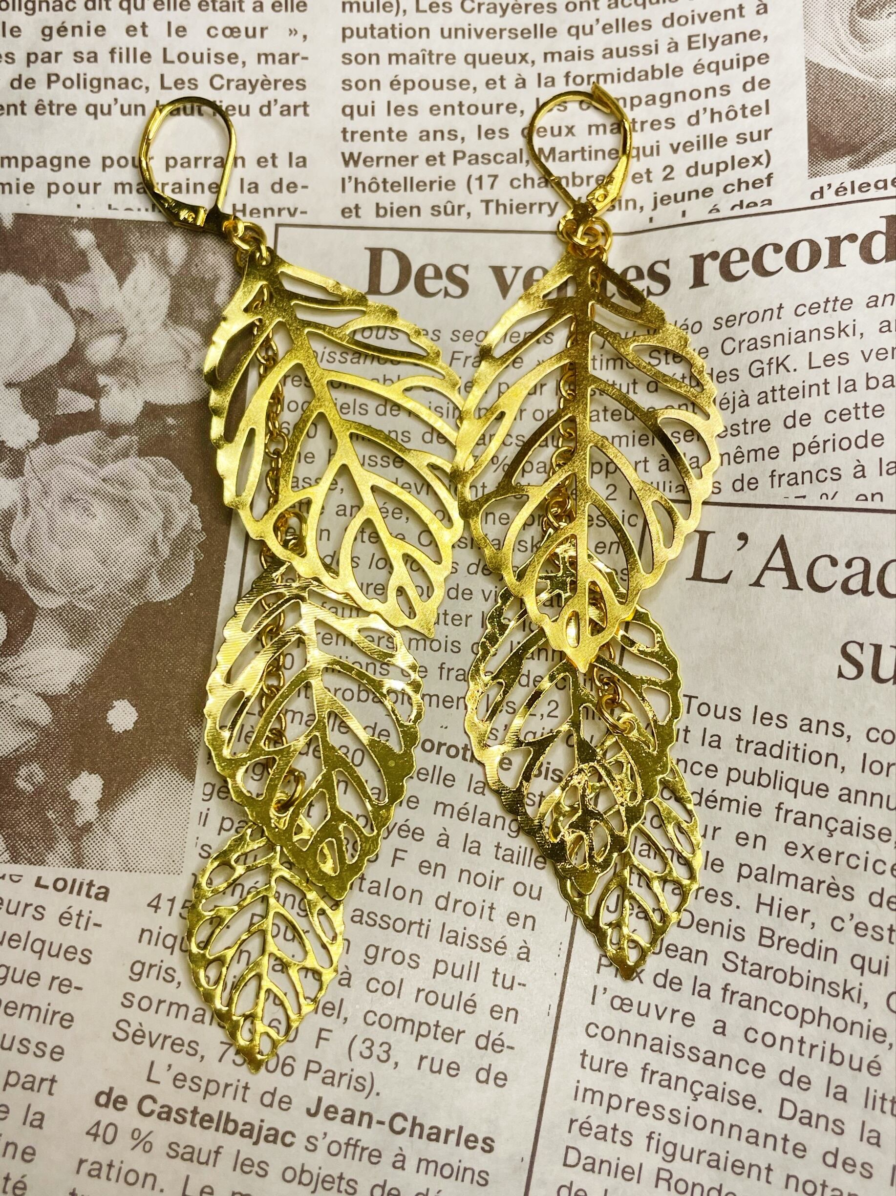 ゴールドリーフ ピアスが新登場です!三つの異なる大きさを持つ金色の葉のパーツが、揺れながら耳元を華やかに演出します。このピアスは、シンプルさの中にゴージャスさを兼ね備え、日常使いはもちろん特別なシーンでも幅広くご利用いただけるアイテムです。