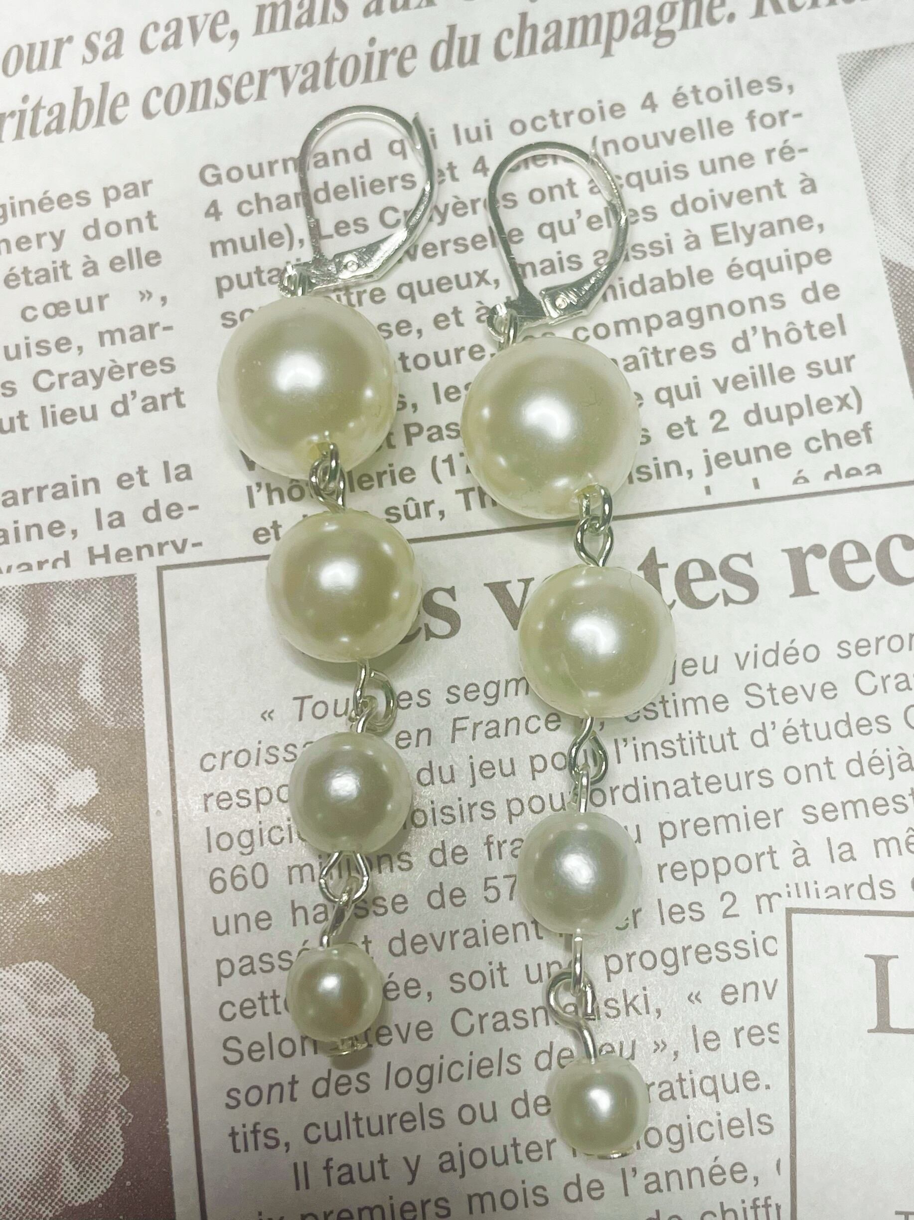 ロングパールピアス シルバーヴァージョンが新登場です!大きさの異なるパールが、耳元でゴージャスに揺れながら美しさを引き立てます。このピアスは、シンプルでありながらも特別な存在感を持ち、日常使いはもちろん、特別なシーンでも幅広くご利用いただけるアイテムです。